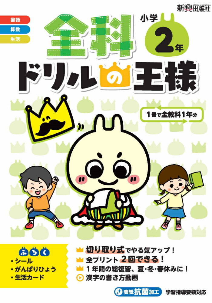 人気のドリルの新刊!1冊で主要教科1年分の学習ができるドリル!1年間の総復習、夏・冬・春休みの学習に最適!裏面には表面と同じ問題を掲載。全プリント2回できる!がんばり表(*スマホでできるデジタルがんばり表もあり)でモチベーションが続く!しあげのテスト身についたか確認!ミシン目ありのはぎとり式何度でも取り組める「しあげのテスト」問題プリントデータ王国シール(1,2年)算数解説動画(3〜6年),漢字の書き方動画(1〜6年),都道府県解説動画(4年),歴史人物解説動画(6年)英語リスニング音声(3〜6年)生活カード(1,2年),社会・理科カード(3〜6年)プログラミング学習(5,6年)