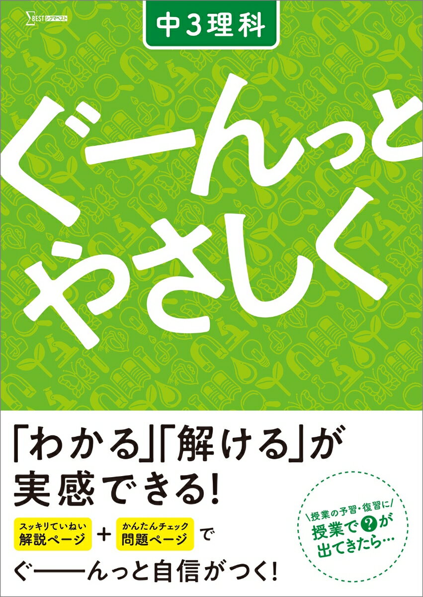 「わかる」「解ける」が実感できる!スッキリていねいな解説ページと練習問題で、ニガテを抜け出し、ぐーんっと自信がつく!特長1:1回2ページかんたん学習中3理科の内容を、超基礎からわかりやすく解説しています。1回2ページの構成なので、授業が少し難しい!という人でも安心して取り組めます。特長2:大きな図でわかりやすい解説に出てくる図は、できるだけ大きく、親しみやすいタッチにしています。やる気が続き、楽しんで学ぶことができます。特長3:練習問題で実力アップそれぞれの回には「解いてみよう!」として問題を載せています。大事なところに絞って出題しているので、これを解けばすぐに実力アップできます。◇◆ 解答・解説は、別冊(16ページ)になっています。◆◇