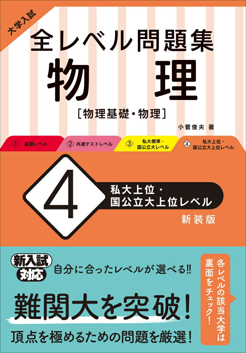 《新入試対応》難関大を突破!頂点を極めるための問題を厳選!◆特長◆掲載問題数:54題(力学18題・熱6題・波動9題・電磁気17題・原子4題)味わい深い問題、教科書とは異なる視点から物理現象をとらえさせる問題、既知の物理現象をさらに一歩踏み込んで深く考えさせる問題を多数掲載し、高度な理解を得ることができます学習アドバイス:物理は「きっちり理解できる科目」です!物理は言葉じゃなくて、数式で理解!近似計算にも慣れておこう!◆自分にあったレベルが選べる!◆1 基礎レベル2 共通テストレベル3 私大標準・国公立大レベル4 私大上位・国公立大上位レベル第1章 力学第2章 熱第3章 波動第4章 電磁気第5章 原子