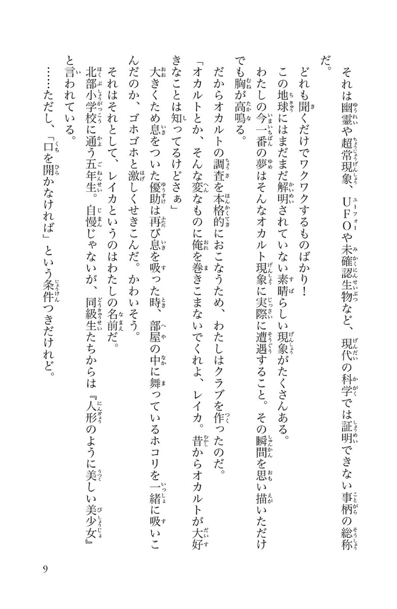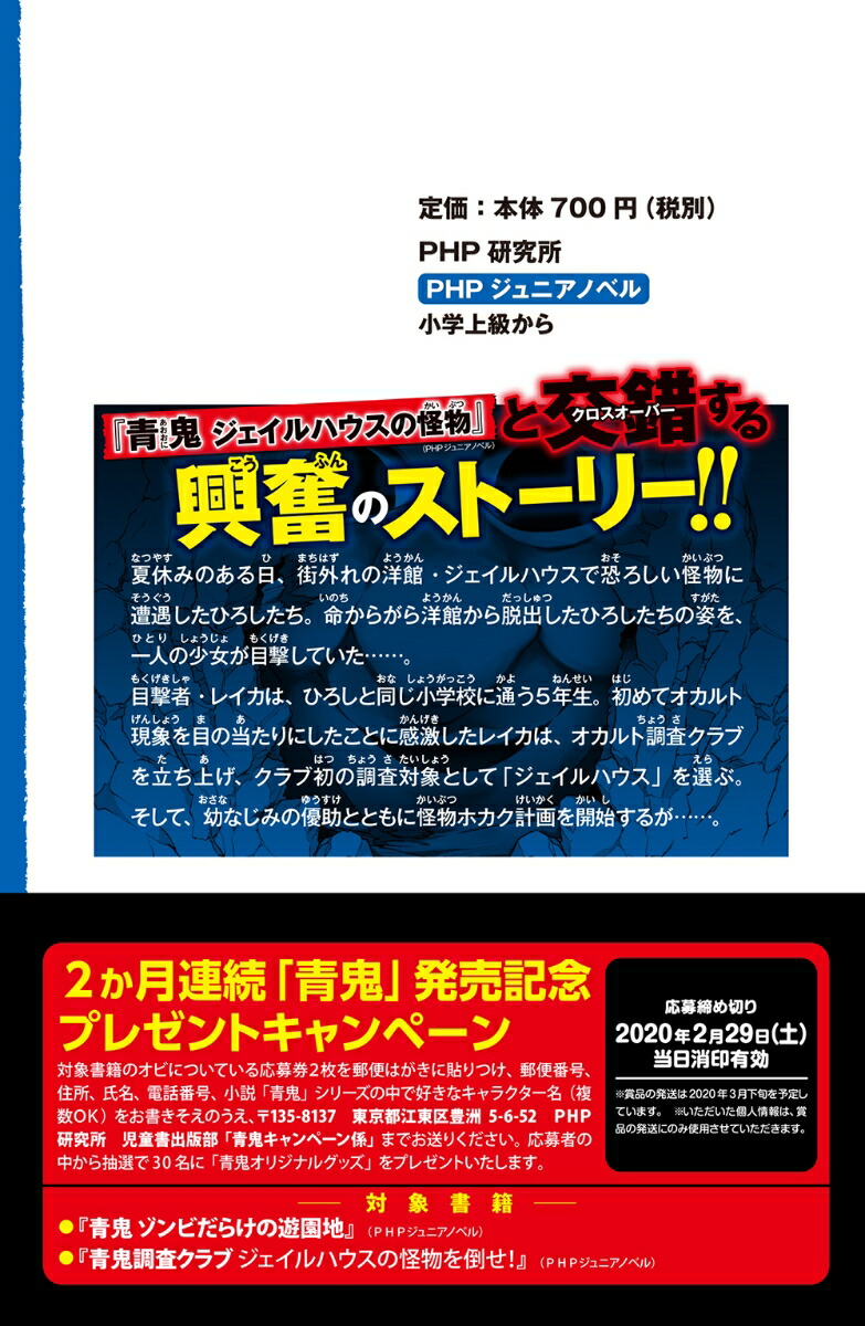 『青鬼 ジェイルハウスの怪物』(PHPジュニアノベル)と交錯(クロスオーバー)する、興奮のストーリー!夏休みのある日、街外れの洋館・ジェイルハウスで恐ろしい怪物に遭遇したひろしたち。命からがら洋館から脱出したひろしたちの姿を、一人の少女が目撃していた……。目撃者・レイカは、ひろしと同じ小学校に通う5年生。初めてオカルト現象を目の当たりにしたことに感激したレイカは、オカルト調査クラブを立ち上げ、クラブ初の調査対象として「ジェイルハウス」を選ぶ。そして、幼なじみの優助とともに怪物ホカク計画を開始するが……。