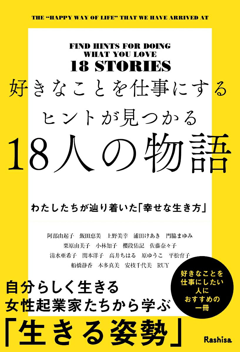 【18人の物語にヒントは眠る】「好きなことを仕事にしたいけれど、何から始めていいかわからない」「好きなことで仕事を始めているものの、あまりうまくいっていない」「今の働き方や生き方に疑問を感じている」最近では、SNSが普及してきたからこそ多種多様な働き方や生き方が目に留まる時代になってきました。他人の投稿を見ていると、ついつい羨ましくなることもあるかと思います。でも、SNSは発信者の人生の一部を切り取られたものに過ぎないので、そこにあなたが求めている「答え」はありません。好きなことを仕事にしたり、自分らしく生きるヒントを得るためには、18人の人生の物語に触れる必要があります。あなたと同じように悩んだり、苦しんだりしていた方が、どんなきっかけで人生を変える一歩を踏み出したのか。そして、どのようにして困難な壁を乗り越えていき「今」があるのか。これらを知ることで、今あなたが求める「答え」が必ず見つかるはずです。本書では好きなことを仕事にする18人の女性起業家が「今」に至るまでの物語を赤裸々 に綴ってくださっています。彼女たちも色々な壁を乗り越えて、「幸せな生き方」をそれぞれ見つけておられます。18人の一人ひとりの物語に触れることで、あなたにとっての「幸せな生き方」が見えてくるかもしれません。 もし、次の項目に一つでも当てはまるなら、手に取って頂ければと思います。◇好きなことを仕事にして毎日楽しく過ごしたい◇自分らしく自由に生きたい◇我慢する人生を手放したい本書を手に取り、最後まで読み進めていただくと、好きなことを仕事にするヒントが見つかり、自分らしく幸せに生きる一歩を踏み出したくなるはずです。阿部由起子/飯田恵美/上野美幸/浦田けあき/門脇まゆみ/栗原由美子/ 小林知子/櫻段佑記/佐藤奈々子/清水亜希子/関本洋子/高井ちはる/ 原ゆうこ/平松育子/船橋静香/本多真美/安枝千代美/ RUY