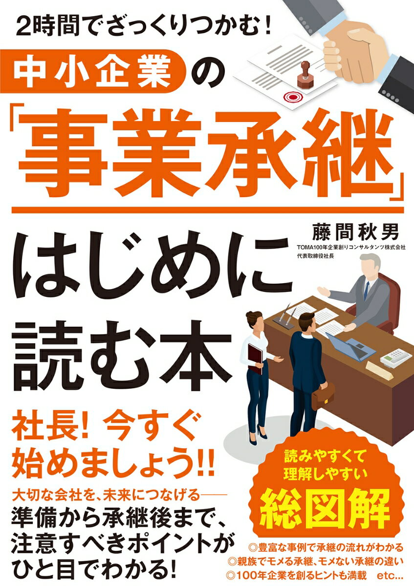 創業以来35年以上、税理士法人、監査法人、弁護士法人、社会保険労務士法人、行政書士法人、M&Aなど、あらゆるコンサルタントを擁し、中小企業の経営者を支援してきたワンストップコンサルティングファーム「TOMAコンサルタンツグループ」。その創業者の藤間秋男氏は、1000社以上のクライアントと接した中で「事業承継」こそが企業存続のリスクだと気づく。どんなに本業が好調だとしても、事業承継で失敗し規模を縮小せざるをえなかったり、存続そのものを諦めたり、なかには大切な企業が人手にわたり、資産すべてを手放すことになってしまったケースも……。本書ではそんな方々をひとりでも減らすべく、「2時間でざっくりつかむ!」シリーズの第4弾として、中小企業の経営層向けに、事業承継のコツや思想を総図解でわかりやすく解説することを目指す。