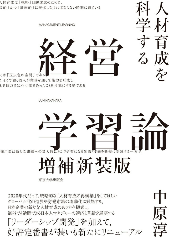 これまでの経営学習論の研究成果を紹介・総括し,さらには独自の実証的な調査データを駆使して,組織経営における有効な人材能力形成施策を展望する定番書が,書き下ろしの新章「リーダーシップ開発」を加えて装いも新たにリニューアル刊行.第1章 本書の概観1.本書の目的2.本書で用いるデータ3.本書の構成4.小括第2章 経営学習論をめぐる社会的背景1.「経営課題としての人材育成」をめぐる社会的背景2.戦略的な「人材育成の再構築」へ3.経営学習論の青写真4.小括第3章 組織社会化1.組織社会化と学習2.組織社会化プロセス3.組織参入時の学習においてOJT指導員が果たす役割4.小括第4章 経験学習1.経験と学習2.経験学習研究の展開3.経験学習の実態に迫る4.小括第5章 職場学習1.職場学習の定義2.職場学習の先行研究3.職場学習への実証的アプローチ4.小括第6章 組織再社会化1.2つの組織再社会化2.中途採用者の組織再社会化3.小括第7章 越境学習1.越境学習2.越境学習の深層に存在する主要な社会的ニーズ3.越境学習の実態に迫る4.越境をめぐる社会的実験5.小括第8章 今後の研究課題ーーグローバル化に対応した人材育成の模索1.グローバル化と人材開発2.結語補 章 リーダーシップ開発1.リーダーシップ2.「リーダーシップ開発」という概念3.企業におけるリーダーシップ開発の実際4.実証的研究5.小括