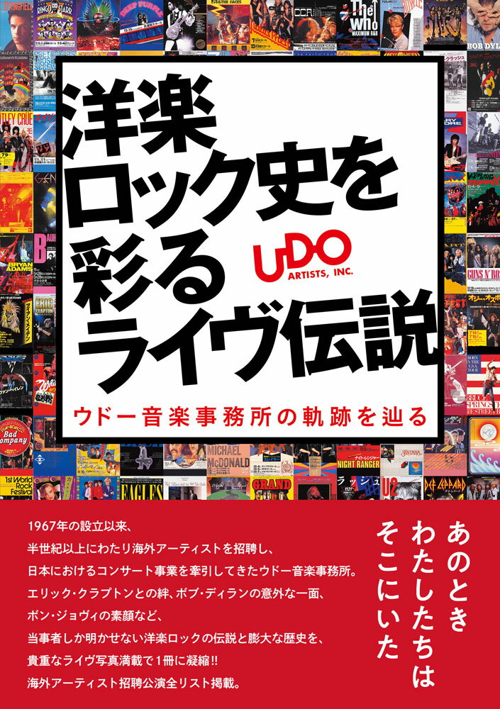 1:■“ロックのウドー”の誕生 2:■特別寄稿 3:ウドー音楽事務所と共に 湯川れい子 4:■Creating History 5:時代と共に切り拓かれたライヴ・エンターテイメントの新境地 6:■特別寄稿 7:ウドー音楽事務所と共に 東郷かおる子 8:■スタッフ・インタビュー(1) 9:ウドー音楽事務所会長 重冨章二 10:新聞紙を丸めたので手のひらを叩くと、すごく大きな音が出るんですよ。 11:するとみんな「きゃー!!」って散るから、その隙間を抜けていく。 12:●Recorded in Japan 13:■HISTORY & EPISODES 14:1970年代の主な来日公演とエピソード 15:1972-1979 16:■HISTORY & EPISODES 17:1980年代の主な来日公演とエピソード 18:1980-1989 19:■特別寄稿 20:ウドー音楽事務所と共に 伊藤政則 21:■Looking Back 1970s-1980s 22:AEROSMITH,EMERSON,LAKE&PALMER,ERIC CLAPTON,FLEETWOOD MAC, 23:JAPAN,VAN HALEN,RAINBOW,MICHAL SCHENKER GROUP, 24:DARYL HALL&JOHN OATES,GENESIS,BON JOVI,CHEAP TRIC and more... 25:■TRESURE BOX 26:ウドー音楽事務所及びスタッフの秘蔵品を公開 27:■HISTORY&EPISODES 28:1990年代の主な来日公演とエピソード 29:1990-1999 30:■HISTORY&EPISODES 31:2000年代の主な来日公演とエピソード 32:2000-2019 33:■Looking Back 1990s-2010s 34:DAVID BOWIE,NIRVANA,PEARL JAM,METALLICA, 35:JIMMY PAGE&ROBERT PLANT,JOHN MAYER and more... 36:■スタッフ・インタビュー(2) 37:ウドー音楽事務所副会長 高橋辰雄 38:大物になっていく人は“ミー・ファースト”って言わない。いつも“ユー・ファースト”。自分のスタイルを持ち、自分の価値観を信じているから、揺るがないし、他人にやさしい。 39:■元洋楽A&R対談 40:喜久野俊和(元CBSソニー)×佐藤 淳(元ワーナー・パイオニア) 41:レコード会社にも踏襲されたウドー・スタイル 42:■あのときわたしたちはそこにいた 43:忘れがたいライヴ体験 44:各界の洋楽愛好者にアンケート 45:●ウドー音楽事務所招聘 海外アーティスト公演一覧