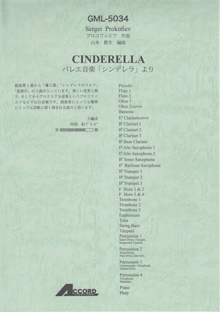 【輸入楽譜】プロコフィエフ, Sergei: バレエ音楽「シンデレラ」より 5つの小品/Fichtenholz編