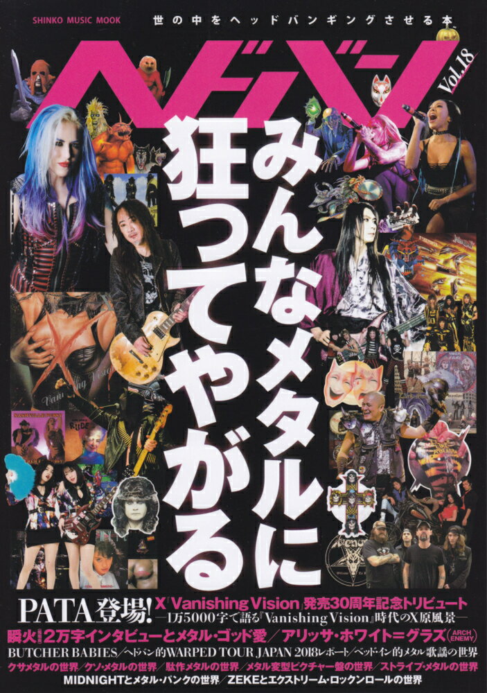 1:■歴代『Vanishing Vision』コレクション 2:■JUDAS PRIEST メタル聖典(スタジオアルバム)全18作品徹底解説 3:■アリッサ・ホワイト=グラズ(ARCH ENEMY)インタビュー 4:■BUTCHER BABIES ライヴ・レポート 5:■VANS WORPED TOUR JAPAN 2018レポート 6:■THE冠 ライヴ・レポート 7:■今でもみんな『Vanishing Vision』に狂っていやがる 8:■PATA(X JAPAN)1万5000字インタビュー 9:■瞬火(陰陽座)2万字インタビュー