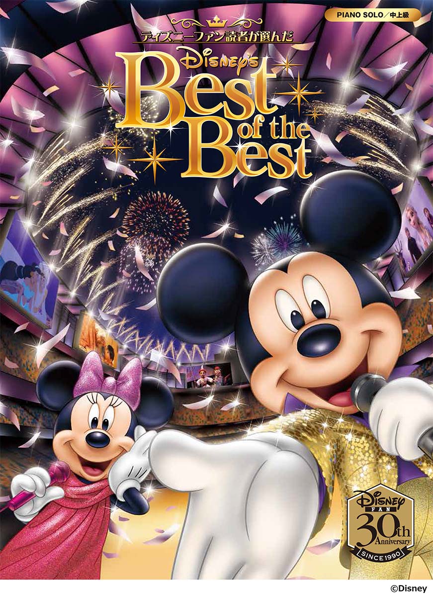 月刊『ディズニーファン』(講談社刊)創刊30周年を記念して、読者による投票で選ばれた人気上位曲を集めた CDアルバム『ディズニーファン読者が選んだディズニー ベスト・オブ・ベスト 〜創刊30周年記念盤』のマッチング曲集の登場です。“映画音楽部門”、“テーマパーク音楽部門”、“ライブエンターテイメント部門”、“あらゆる音楽部門”のそれぞれから読者投票で選ばれた人気曲(英語歌・日本語歌)が集められ、ディズニー音楽のまさに「ベスト・オブ・ベスト」である収載曲に、ピアノ・ソロ用のアレンジを施しました。「ホール・ニュー・ワールド」などの定番曲はもちろん、「スピーチレス」(『アラジン』実写版)「イントゥ・ジ・アンノウン」(『アナと雪の女王2』)など、近年のヒットが記憶に新しいナンバーも収載。惜しまれつつ終了した大人気のショー『イッツ・ベリー・ミニー』からの楽曲や、東京ディズニーランド昼のショー『ドリーミング・アップ!』のメインテーマは初のピアノ楽譜化!!ジャンルを越えて様々な楽曲が 一度に楽しめる、お得な内容です!中級〜上級向けの美しいアレンジで、弾き応えも十分!さまざまな色合いのディズニー・ミュージックの世界を、ぜひピアノでお楽しみください。※本曲集の楽譜内に歌詞は掲載していません。