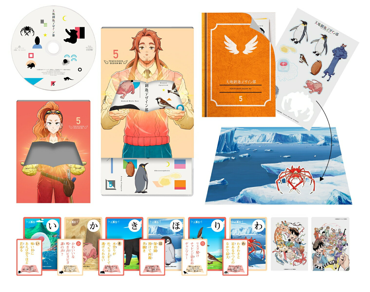 面白くてためになる! 話題の生き物創造お仕事コメディアニメ「天地創造デザイン部」のBlu-ray&DVD 全6巻の発売が決定!・初回封入特典として「原作・蛇蔵先生監修!特製「天デ部」カルタ(8枚)」が付くなど、各巻に豪華特典が付属。・先行上映イベントダイジェスト映像やキャストオーディオコメンタリーなど、各巻に特典映像も満載。<収録内容>本編 第9話、第10話 ▽特典映像・2020年12月13日(日)開催・先行上映イベントダイジェスト映像その5(出演:榎木淳弥/原由実/井上和彦/梅原裕一郎/諏訪部順一/岸尾だいすけ/大空直美/竹内良太/泊明日菜)・「天デ部」×国立科学博物館スペシャル企画 川田先生&大空直美の収蔵庫さんぽ!その5(出演:川田伸一郎(国立科学博物館 動物研究部研究主幹)/大空直美(冥戸役))・キャストオーディオコメンタリー(木村役:梅原裕一郎&海原役:竹内良太)※収録内容は変更となる場合がございます。