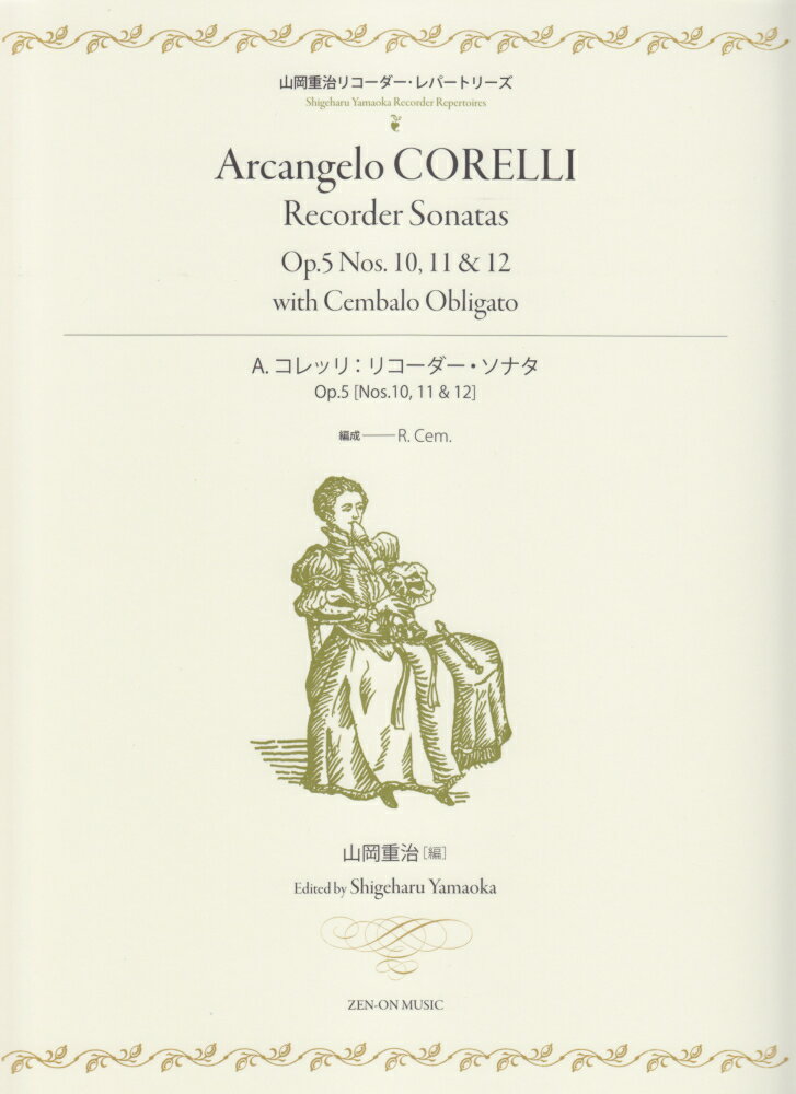 全音楽譜出版社 山岡重治リコーダーレパートリーズ A.コレッリ リコーダー・ソナタ Op.5 [No.10,11&12]