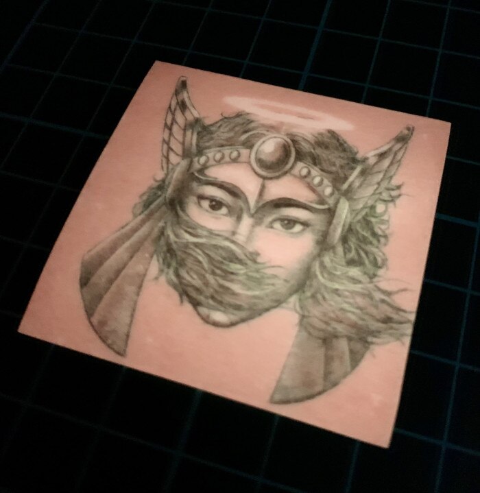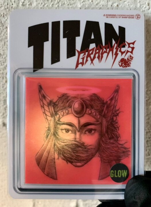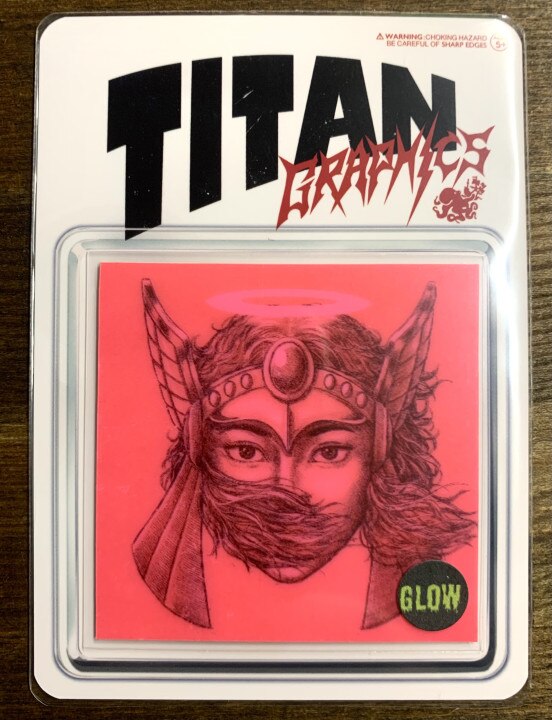 | 『クラン・オブ・ザ・ゴッズ』シリーズ、ラブウォーリアー 蓄光シール サイズ:48mm×48mm 裏有 ※手作りの為、微細な傷、気泡、カット誤差等個体差があります |