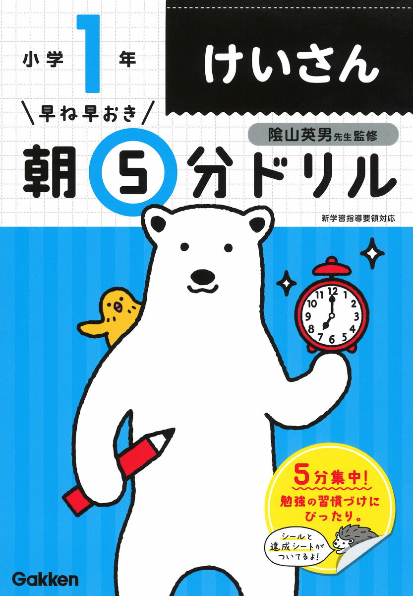 〜朝の勉強で、頭のスイッチが入る! かしこい子に育つ習慣づけに〜■1日たったの5分だから続けやすい!朝の短い時間でも取り組めるように、1日分はたったの5分。スキマ時間の活用や、基礎固めにもオススメです。■やさしく学べる!例題がついているので、解き方がしっかりわかります。毎日コツコツ続けやすい、5分で解ける問題数です。■規則正しい生活習慣が身につく!毎日の睡眠時間や勉強時間を記録できる「生活チェック」つき! 自分の生活を振り返ることで、規則正しい生活習慣が身につきます。■達成シート&シールつきで毎日がんばれる!ドリルが1回終わるごとに、達成シートにシールを貼っていきます。どこまで進んだのかがすぐにわかるため、“がんばり”が目に見えてやる気が継続します。5までの かず10までの かず大きさくらべなんばんめいくつと いくつたしざんひきざん20までの かず3つの かずの けいさんくり上がりの ある たしざんくり下がりの ある ひきざん100までの かず100より 大きい かず大きい かずの けいさんなんじ,なんじはんなんじなんふん(全60回)