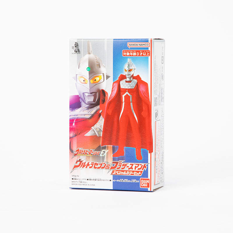 ラメが入ったウルトラセブンのソフビ人形にブラザーズマントがセットになったツブラヤストアオリジナルアイテムです。BOX入り。