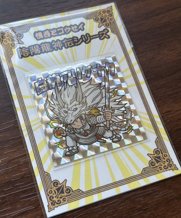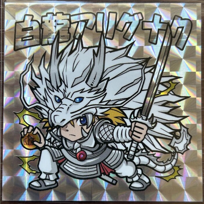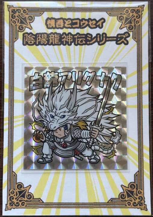 | 陰陽龍神伝シール、第一弾。 『白龍アリグナク』 48m×48m 業者オフセット印刷。 台紙付き、シールスリーブ入り。 裏書あり。 |