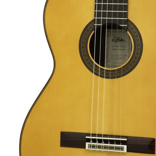 ギター製作技術の伝統を誇るスペインで委託製作され、バインディングや飾り部分には一切プラスチックを使用せず、高級手工ギターと同じように木象眼(モザイク)を使用しています。