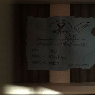YFAシェイプをスプルース単板+インディアンローズウッドSIDE&BACKで構成し、フルグロスのBSカラーで仕上げています。