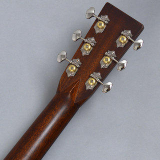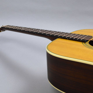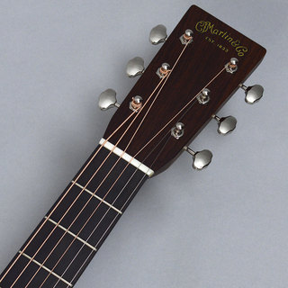 シトカ・スプルース材トップとインディアン・ローズウッド材バックを組み合わせたボディはマーティンギターの代名詞ともいえるクリアなサウンドを発揮し、ストロークでもフィンガーピッキングでも絶品のマーティン・サウンドを奏でます。ヘッドは『Martin&Co』ロゴに黒縁が入ったオールドスタイルで、ペグもクラシカルなオープン・ギアタイプを採用。ナット幅もよりヴィンテージに近い44.45mmを採用。トップカラーにはクラシカルな色味を再現するエイジング・トナー・ナチュラル仕上げを採用。ピックガードはべっ甲柄のティアドロップ型、ヴィンテージホワイトのバインディング、ブリッジピン白にべっ甲柄ドットヘッド入り、ネック形状は幅広のモディファイ・ローオーバル・シェイプを採用。ブレージングをサウンドホール側にシフトすることでトップの振動を強化したフォワードタイプを採用。