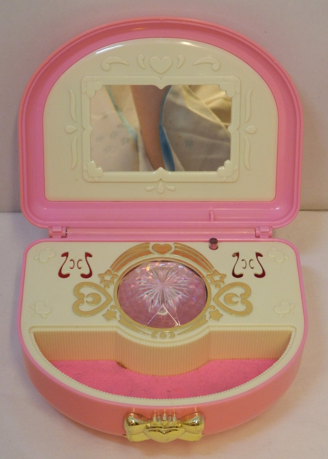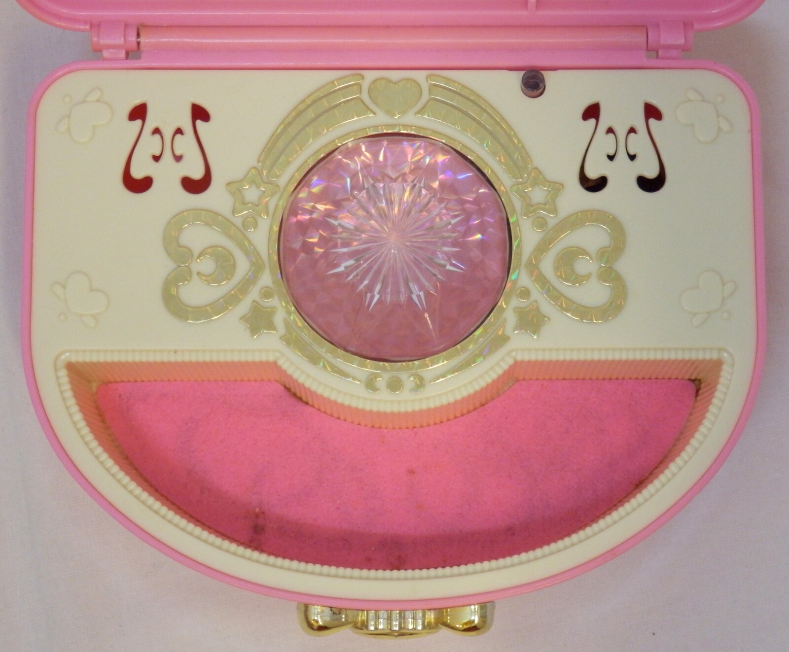 商品状態: 本体のみ/電池蓋欠/ライトギミックOK・オルゴール不動(巻けない)/ヤケ/汚れ/メッキ剥げ/スレ/金属黒ずみ