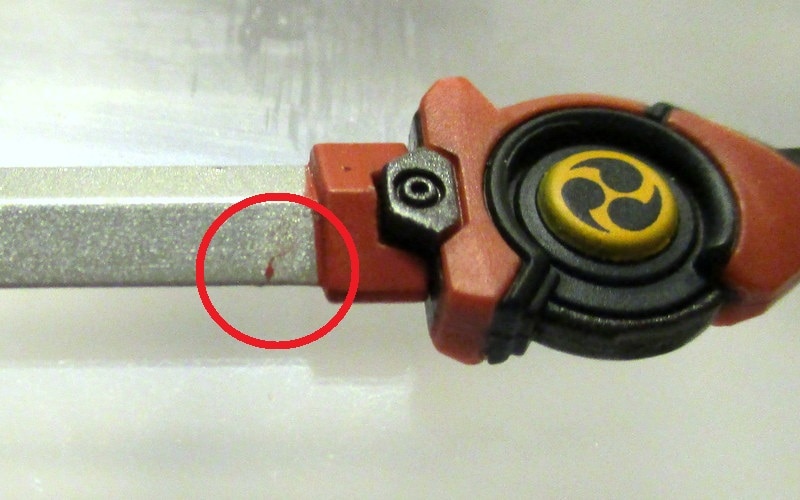 商品状態: 開封/使用※本体股間節ゆるみ、太刀塗装ヒビ(画像6)、通常状態前腕部装甲裏側ベタつき/取説欠品/パッケージいたみ大