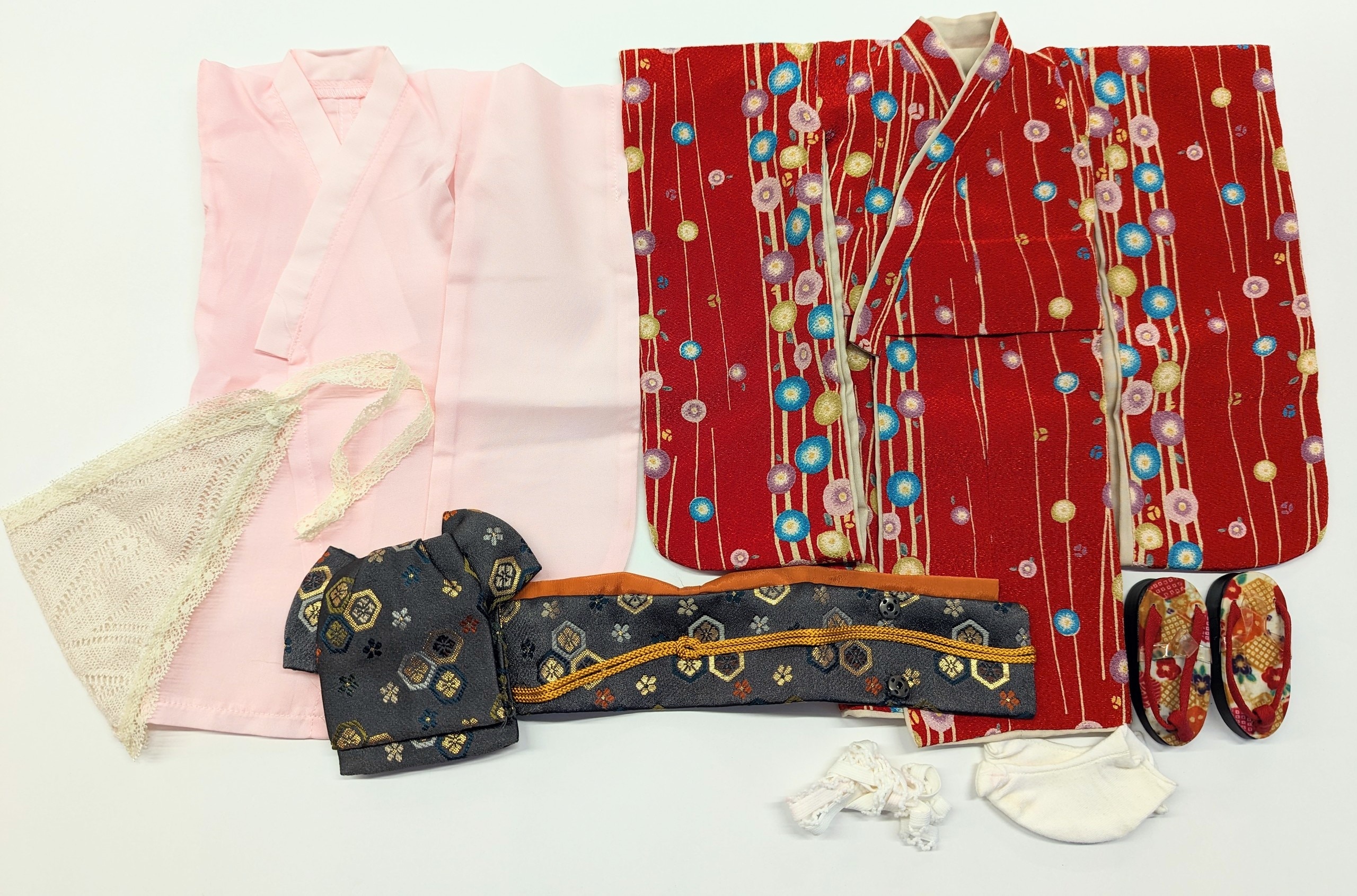 ※『対応サイズ』 Dear SD ※【状態】 元のパッケージ欠品/ショーツ欠品/足袋・腰ひもに色移り有り/襦袢に汚れ有り※画像に映っているもので全てです ※合皮やゴム・金属を含む商品であった場合は経年劣化による表面の劣化ベタツキや破損・白化・錆がある可能性があります、ご注意ください。 ※写真に映っているもので全てです。