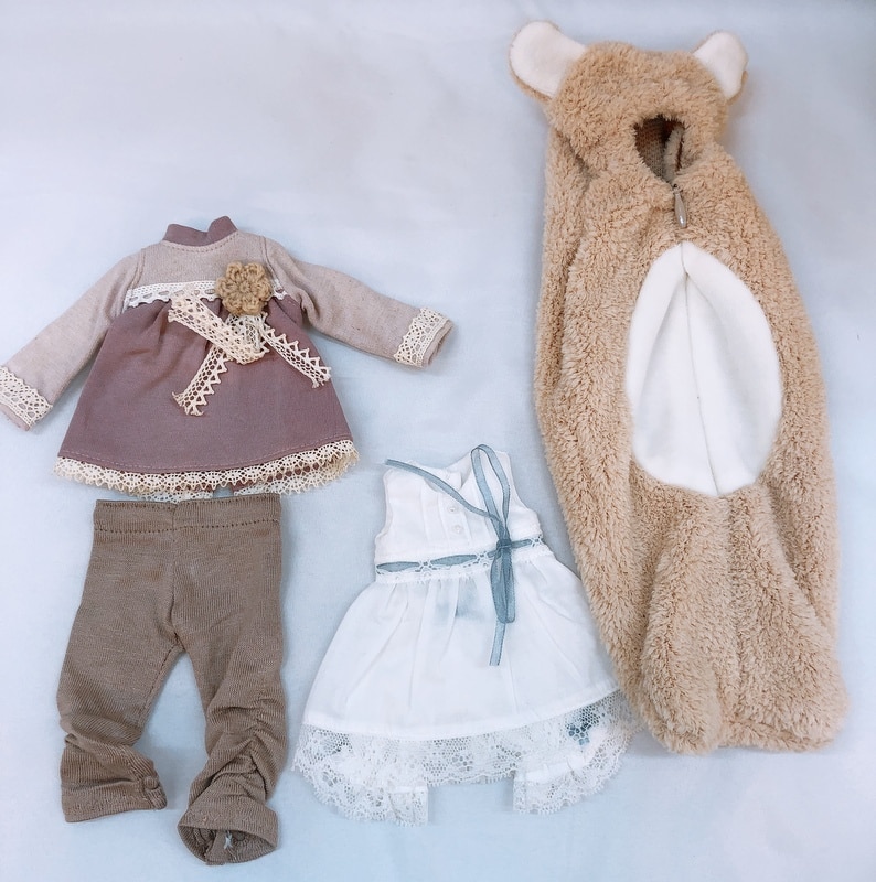 【衣装・靴・アクセサリー】の劣化に関して ■ドール服の劣化について ※皮素材部分のヒビ割れや破れ ※金具部分のサビ(アクセサリー・ホック・ボタンなど) ※色移り・色褪せ ※粘着が弱まり装飾の外れ 経年劣化により上記の状態になる場合がございます。