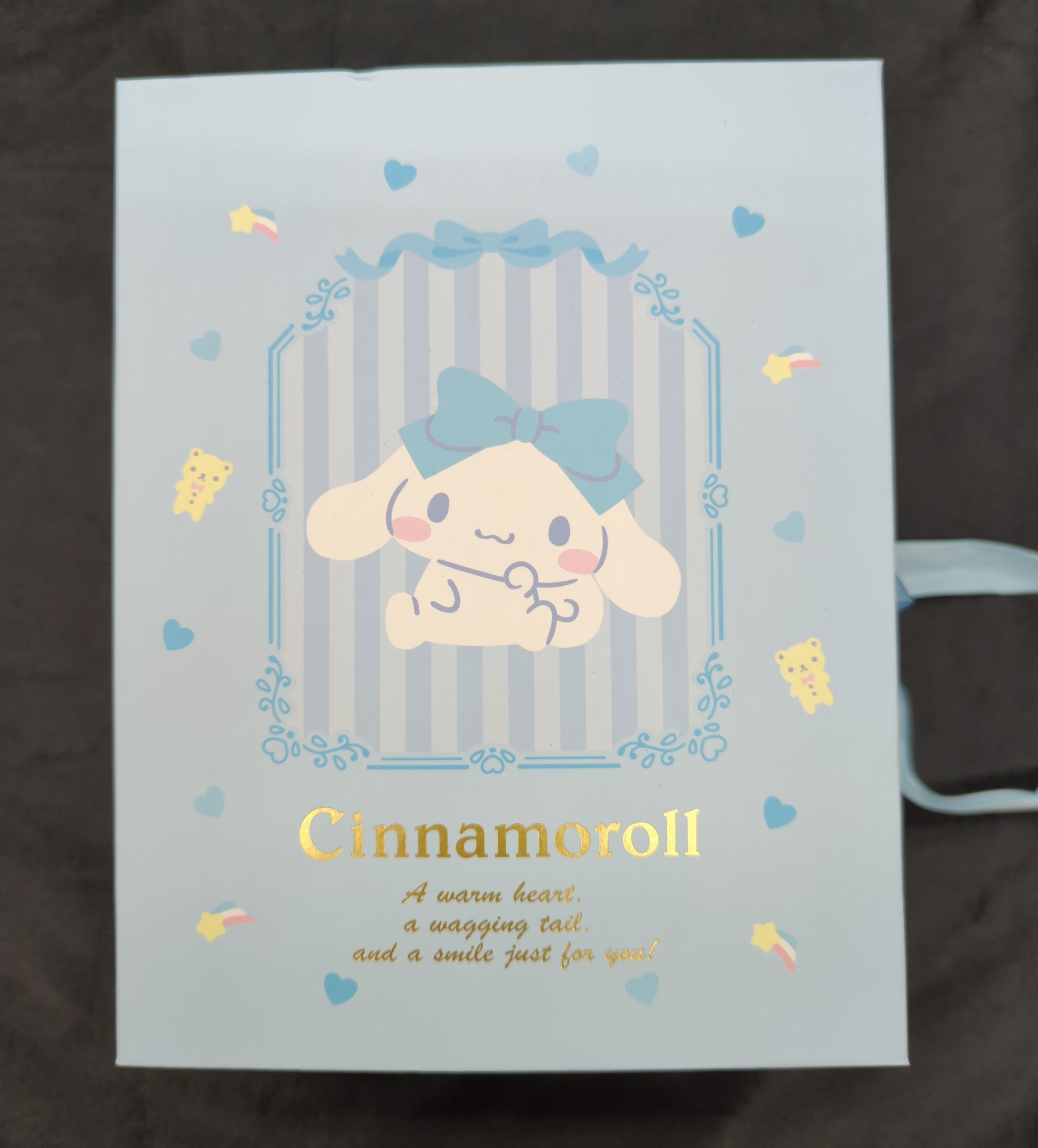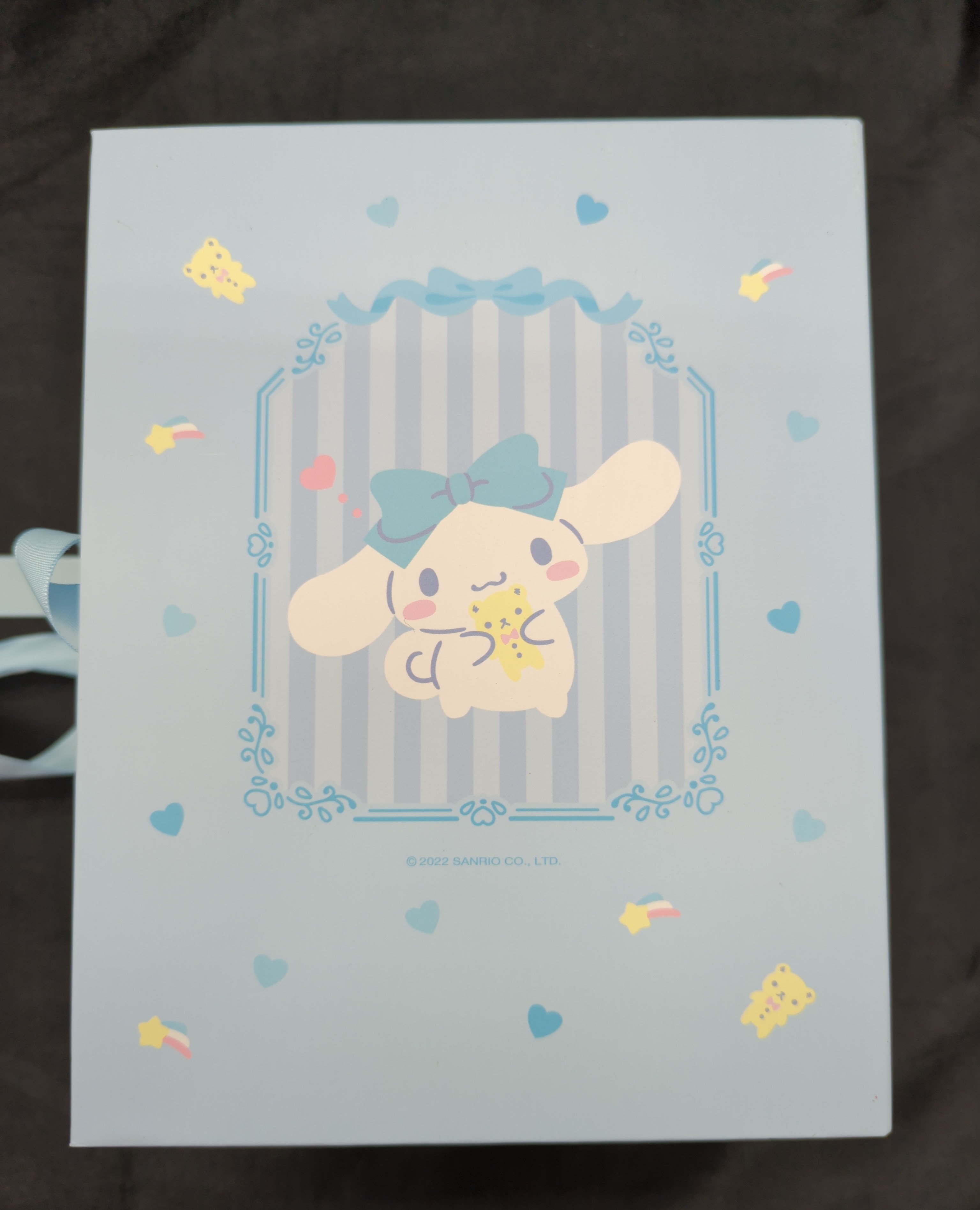 商品状態: 未使用/箱イタミ(上部小凹み・シナモロールの頭のリボン部分にキズ/アクセサリー開封・内袋欠品/内箱小スレ