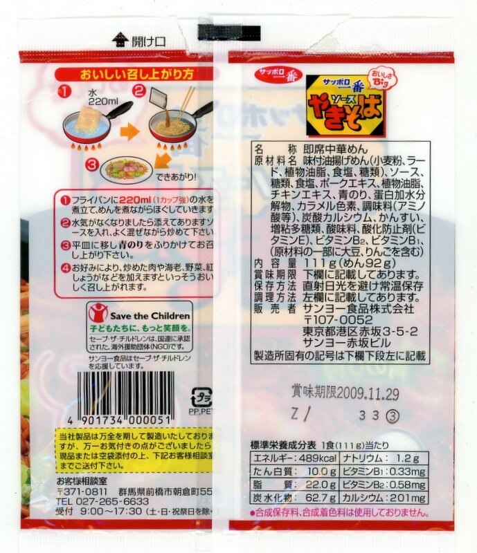 サンヨー食品 サッポロ一番/ソースやきそばおいしさBig 2004期限