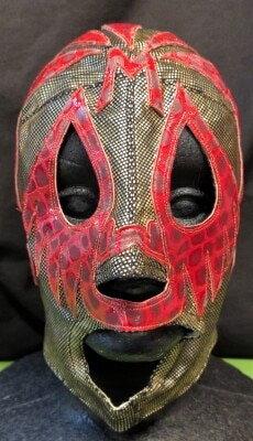 プロレスマスク アンヘルアステカ製 【ミル・マスカラス(茶柄特殊生地×赤特殊生地)】 タグなし