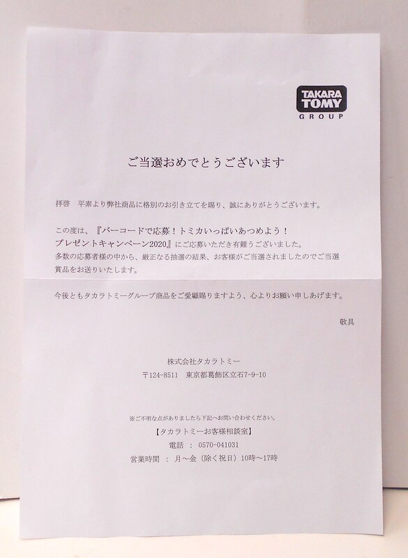 TAKARATOMY バーコードで応募トミカいっぱいあつめようプレゼントキャンペーン2020 トミカ TOYOTA GR SUPRA GT4 CONCEPT仕様 非売品 ST20