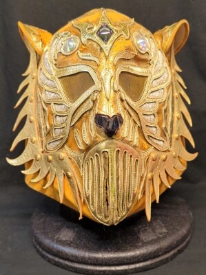 プロレスマスク マニア館製【タイガーキング(金ラメ生地×金フチ)】 タグ付き 犬タイプ