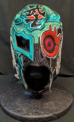 プロレスマスク アンヘルアステカ製【ミル・マスカラス(緑ラメ×赤・黒フチ)】タグなし