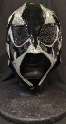 プロレスマスク PUKUPUKU工房製【マスクド・デビロック(銀ラメ×金フチ)】 タグ付き