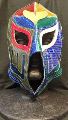 プロレスマスク LAGOCEAN製【スペル・デルフィン(青マーブル生地×赤・金ラメ・緑ラメ・白特殊フチ)】タグ付き サイン入り