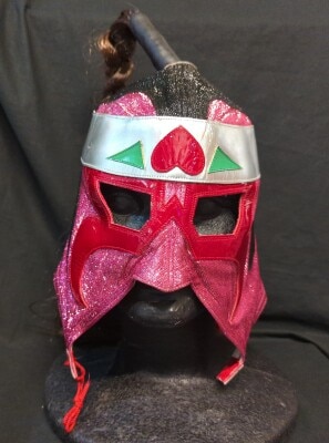 プロレスマスク ローリン製 【モモタロウ(ピンク・黒×赤・銀フチ)】タグ無し