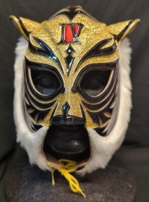 プロレスマスク YN製【4代目タイガーマスク(金ラメ×黒フチ)】 タグ付き サイン入り チャックタイプ