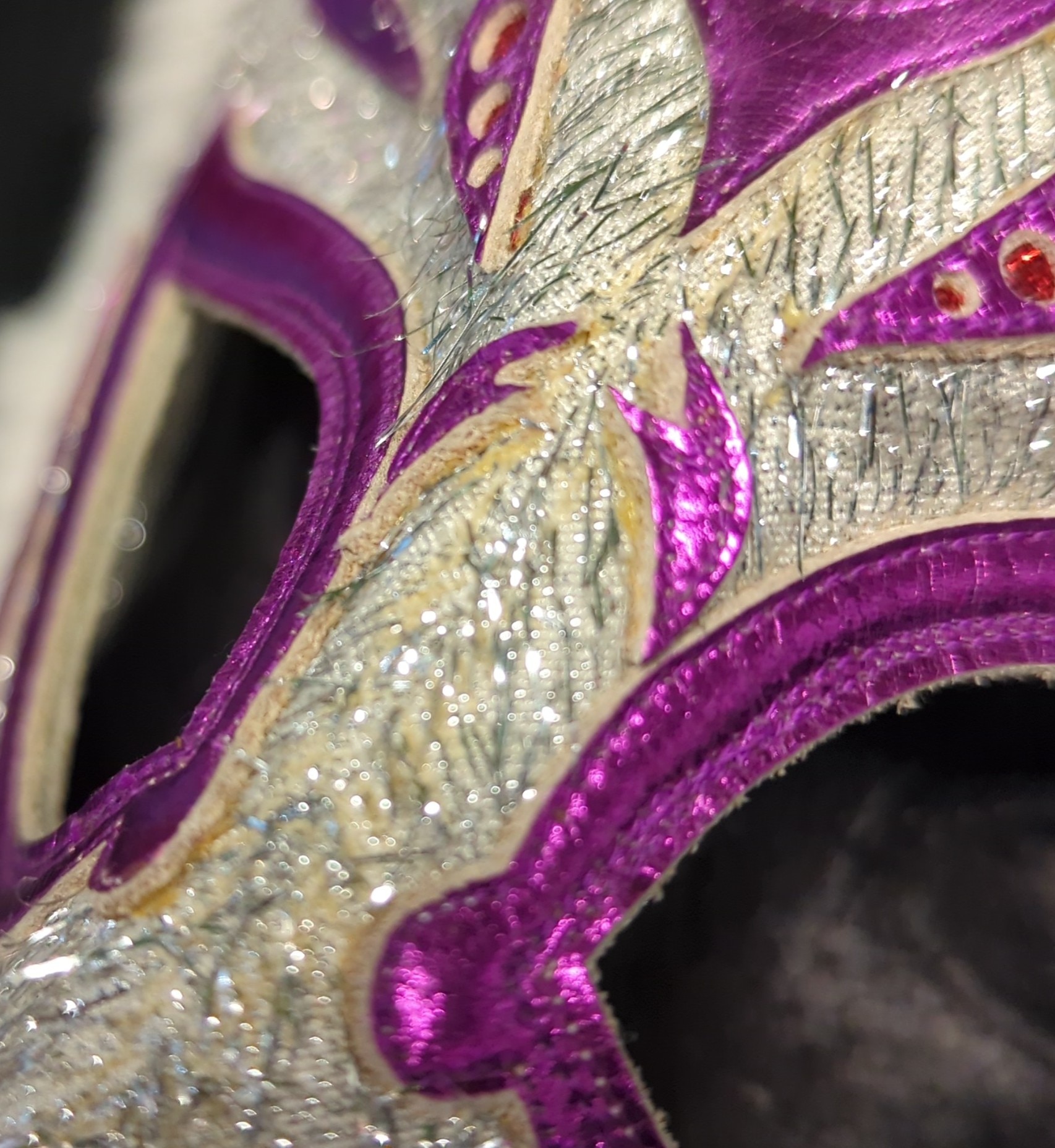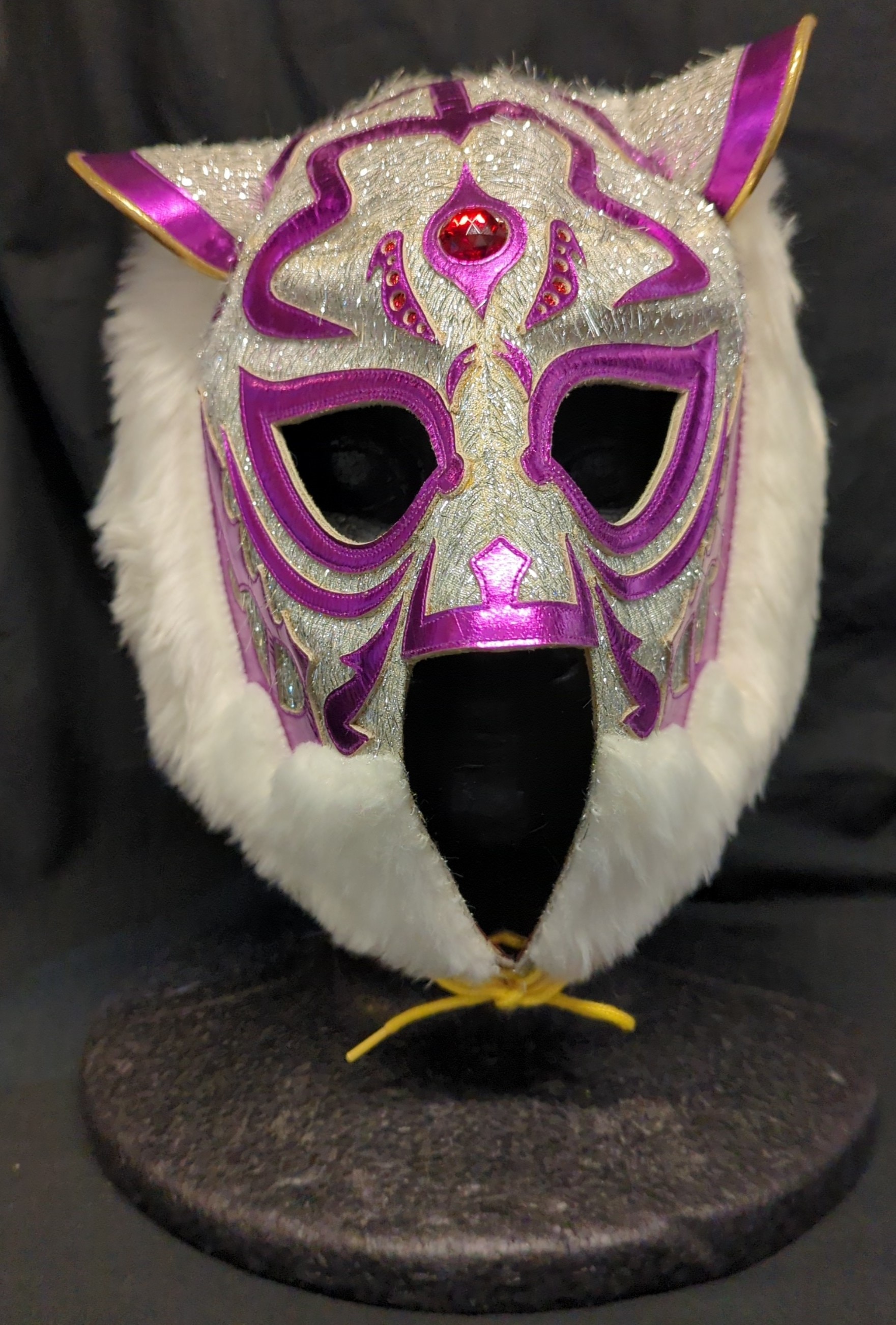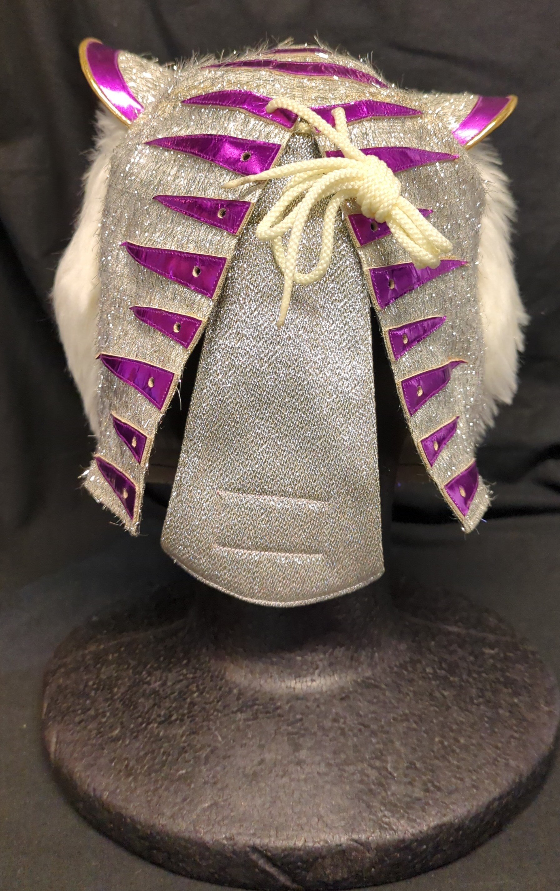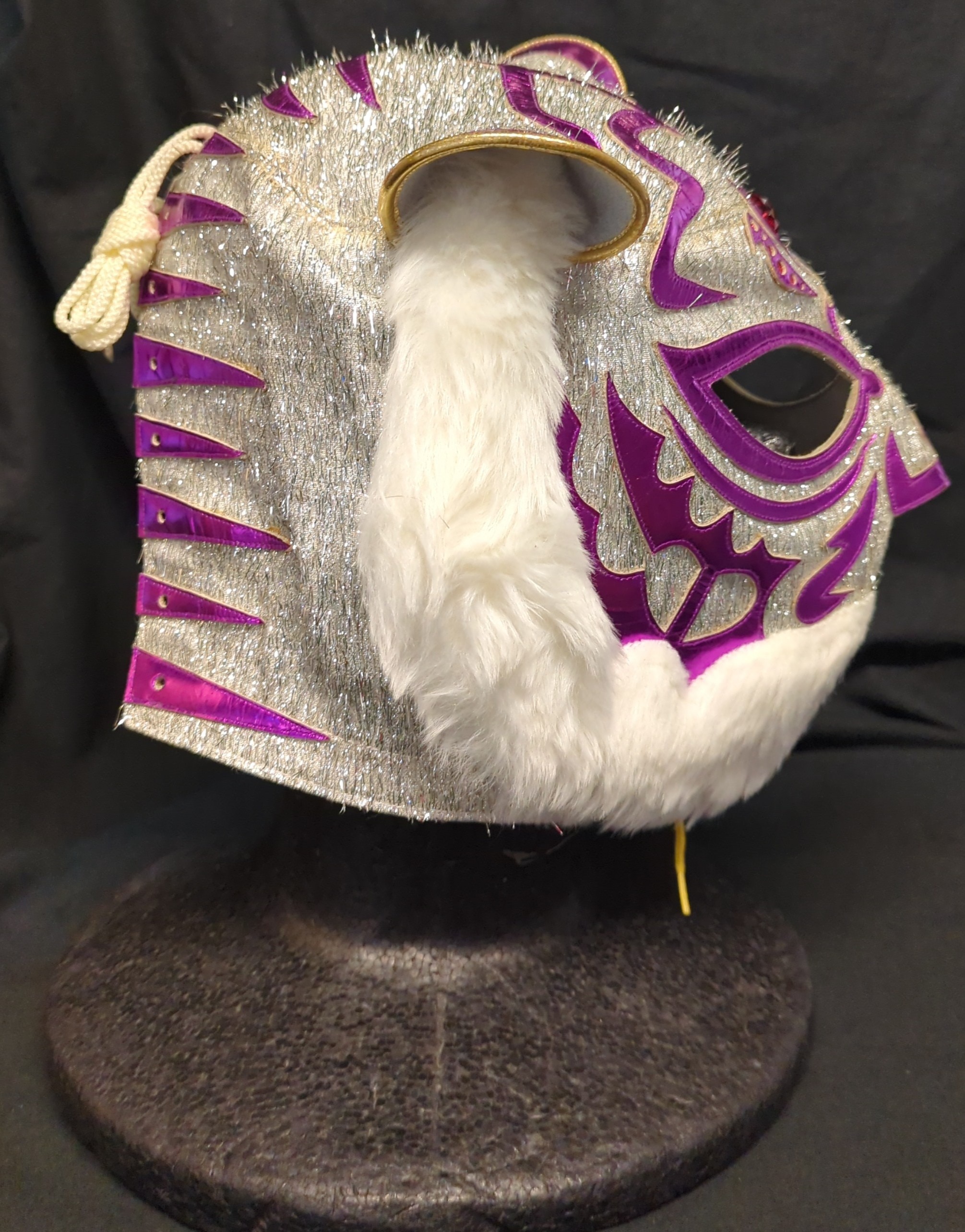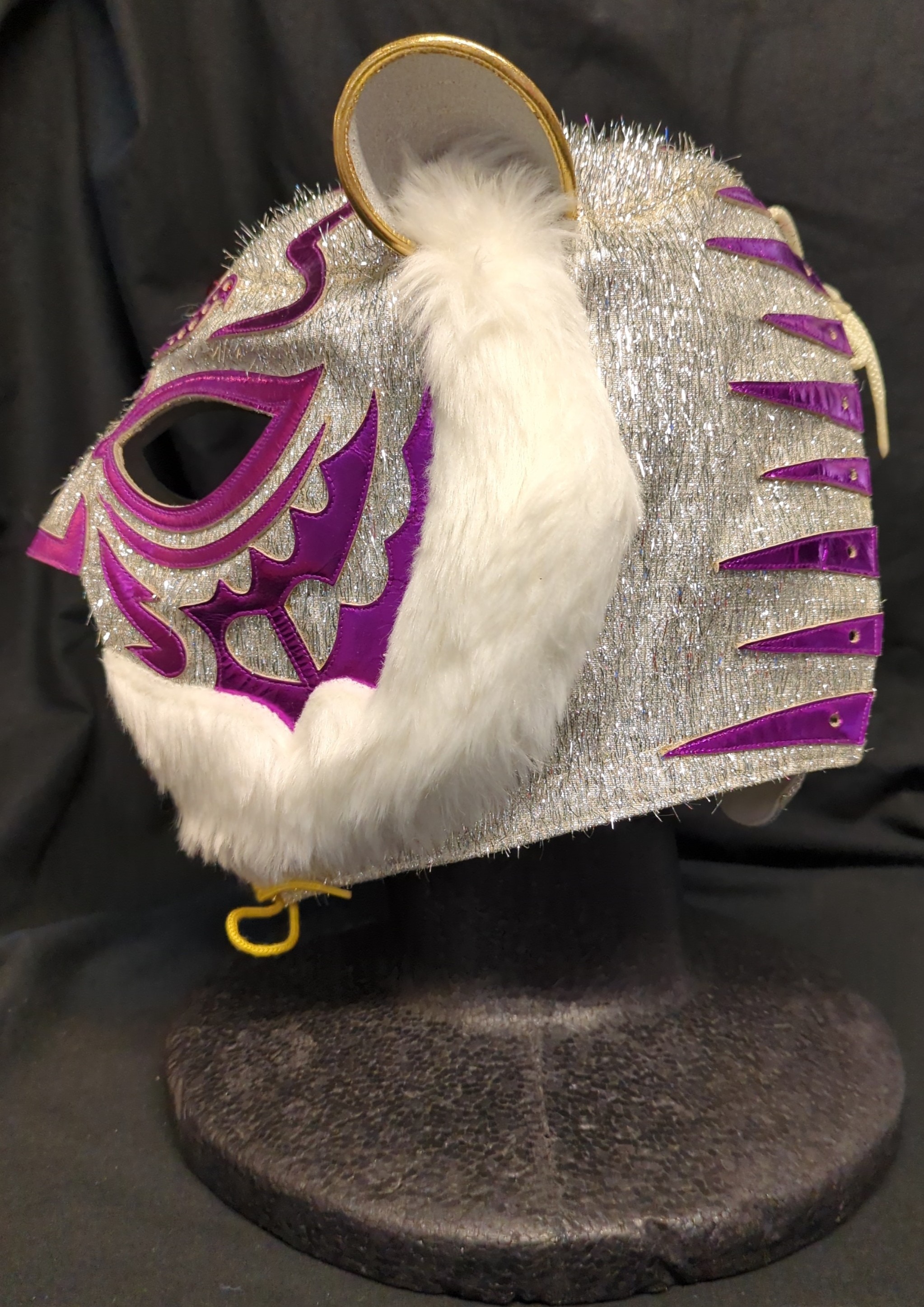 プロレスマスク マニア館製【4代目タイガーマスク(銀タイガーラメ×紫メタリックフチ)】 タグ付き