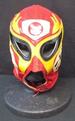 プロレスマスク KONDOU製 【SATO(赤×黄・黒・白フチ)】タグ無し サイン入り