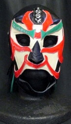 プロレスマスク ISSY製 【ザ・グレート・サスケ(特殊生地スパンコール×白・赤特殊フチ、青メタ眉)】 タグ付き 本人使用