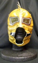 プロレスマスク YN製【初代タイガーマスク(金ラメ×黒フチ)】 タグ付き 「義」文字サイン入り 本人着用 着用写真付き