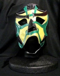 プロレスマスク ローリン製 【ザ・グレート・サスケ(黒×白・緑特殊フチ、黒眉)】 タグ無し 本人納めマスク