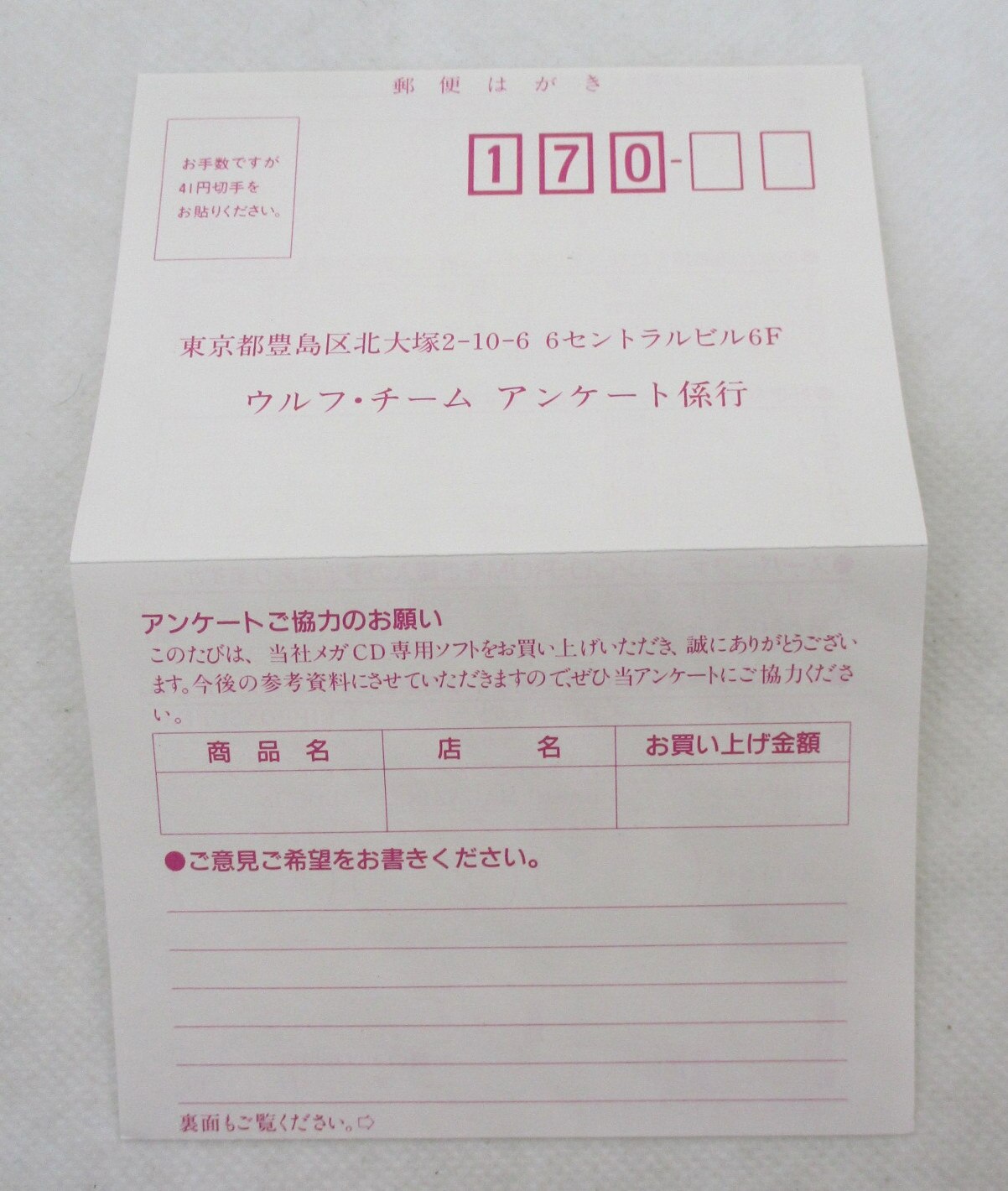 備考:ハガキ付き。 -