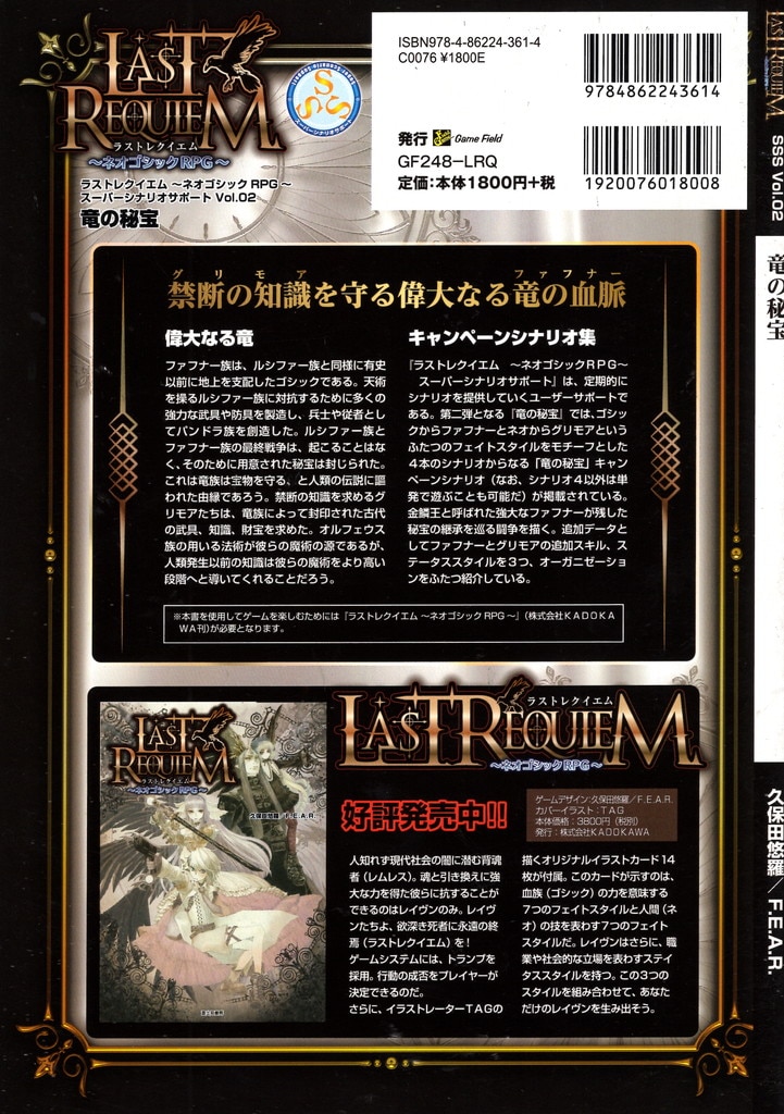 富士見書房 ネオゴシックRPG 久保田悠羅/F.E.A.R ラストレクイエム スーパーシナリオサポート Vol.02 竜の秘宝 2