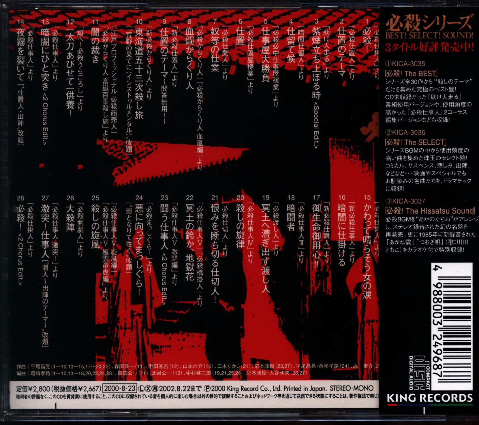 キングレコード 国内ドラマサントラCD 必殺シリーズ オリジナルサウンドトラック全集3 助け人走る/必殺剣劇人 3