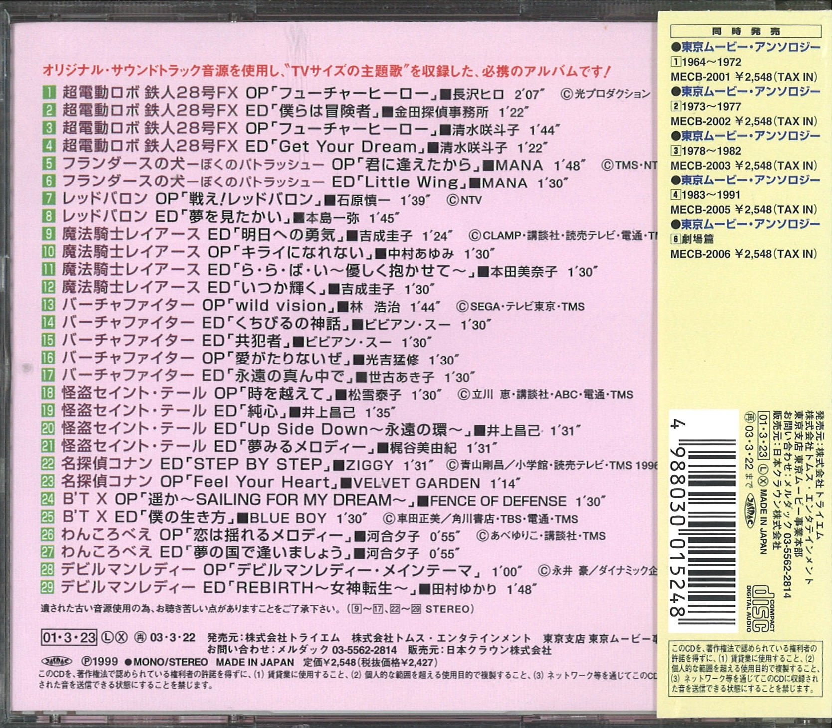 帯付きCD 東京ムービー・アンソロジー3 1978~1982 2001/03/23 MECB-2003 4988030015224(STIBA2117)