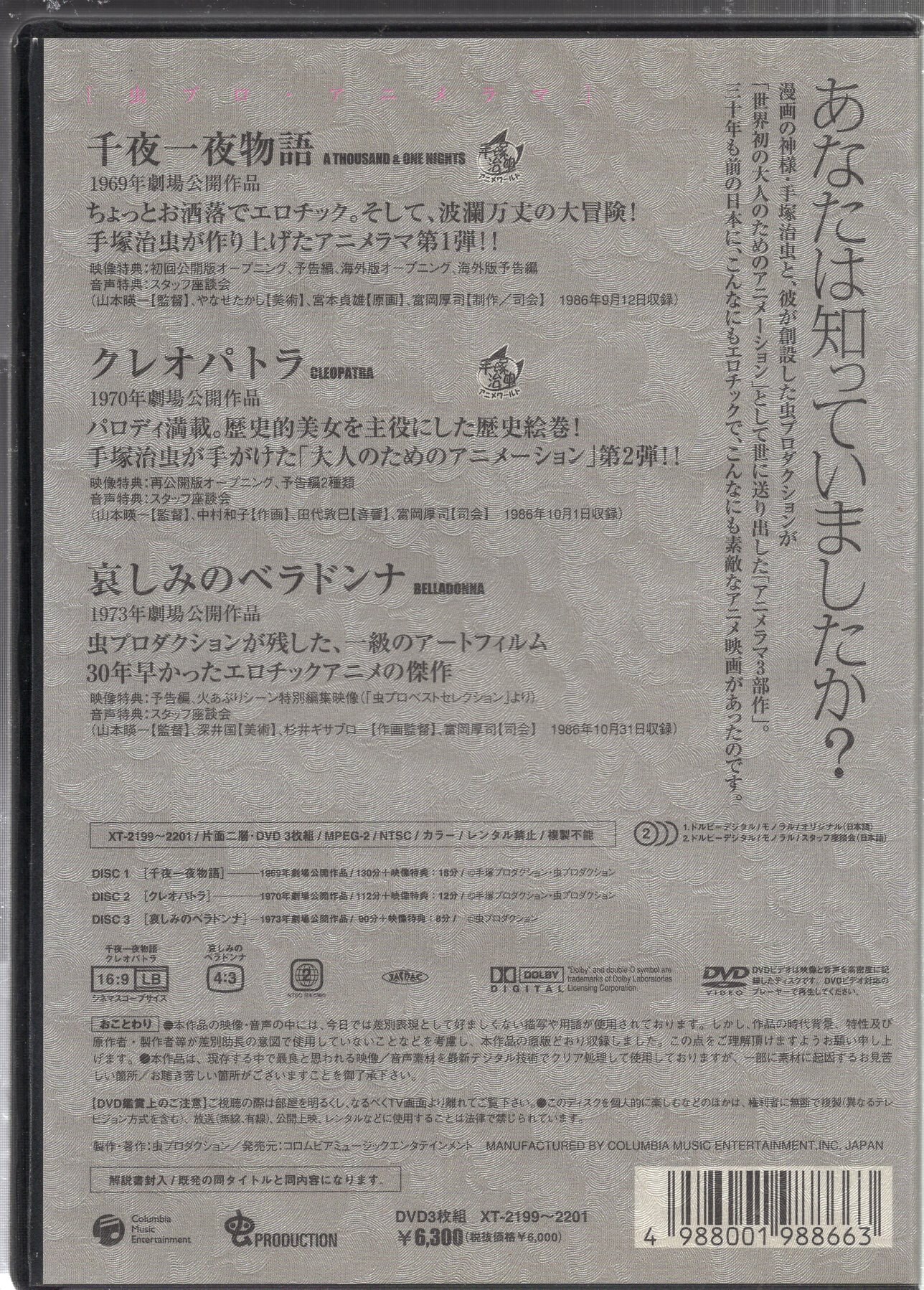 手塚治虫 DVDBOX3枚組 千夜一夜物語 クレオパトラ 哀しみのベラドンナ