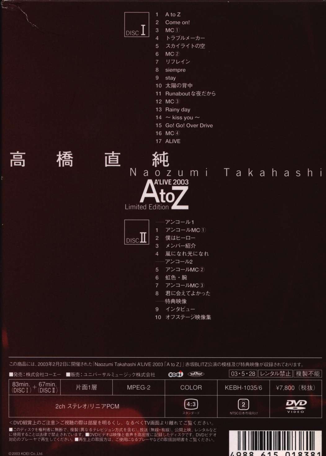 ライブDVD A'LIVE 2003 AtoZ 高橋直純