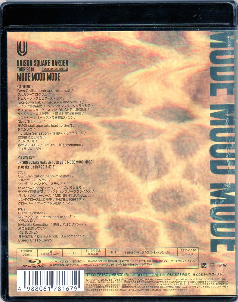 ライブBlu-ray UNISON SQUARE GARDEN TOUR 2018 MODE MOOD MODE
