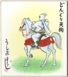 うしおそうじ直筆カラー色紙「朱房の小天狗」