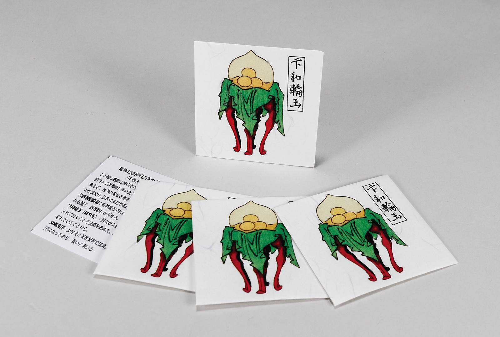 | 日本を代表する浮世絵師、葛飾北斎[1760-1849]が、晩年62才の時に描いた「江戸の性具」が硬貨サイズのぽち袋に! それぞれ4枚入りです。 ■性具の紹介 ・卞和輪玉(琳の玉):男女が交合の際に、女性の膣に入れておくことで快感を高めた。玉の内部に鈴が仕込まれていたことから、あるいは、玉同士が擦れて「リンリン」と鳴ったことから。 |