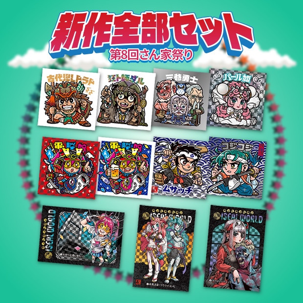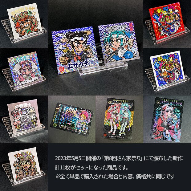 | 【内容物】 2023年開催の第8回さん家祭りにて頒布された新作シールを全部まとめたセットです。 バータリ・サガ(4枚)+電脳娘(2枚)+ニコイチ貼絵巻(2枚1セット)+イシールワールド(3枚) ※それぞれ個別に購入した場合も、こちらのセットを購入した場合も 内容物、価格は同じになります。 |