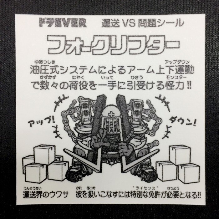 | ドラGODシリーズ誕生以前に製作されていたコンセプトキャラクターをブラッシュアップ!! 新たに生まれ変わってシール化した「フォークリフター」がついにキミの手に!! フォークリフターは元々はコミックに同梱という形での販売のみだった商品です。 この機会にぜひお買い求めください!! |